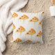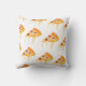 This white pillow that features pictures of pizza slices on the front and back. This pillow is a new take on your regular pillow, that gives your home a more trendy and fun outlook.