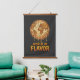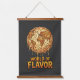 Cartoon Earth as a giant dripping pizza, with distressed text: “World of Flavour.”
