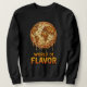 Cartoon Earth as a giant dripping pizza, with distressed text: “World of Flavor.”