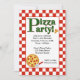 Pizza Party! This pizza party invitation features a pizza, red and white checks and is the perfect way to invite friends and family to a pizza party! Customise with your details for a truly personalised card.