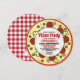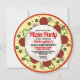 Fun pizza party custom invitations - this design features a classic depiction of a deluxe pizza with pepperoni, sausage, garlic, mushrooms, green peppers, pineapple and black olives and a text template field for your to personalise each line for your pizza party.