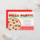 Our Pizza Party invitation will make everyone hungry for a pizza pie! The design features the words "Pizza Party!" in red and green alongside a red and white chequered tablecloth and a large supreme pizza.