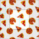 Colourful pizzas and pizza slices patterned over a white background. You can change the background colour if you wish.