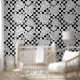 Pizza Patterned Black and White Chequerboard Wallpaper