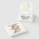 The coasters are gorgeous, a quality feel and heavy weight. They look like a precious archeological find. A rustic stone juxtaposed with a modern floral black and white print. I like the way the print goes slightly imperfect on the cut stone edges giving them a kind-of natural beauty.