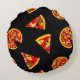 Awesome kids round pillow with a colourful pizza on the front, and pattern of pizzas and slices on the black. Perfect for kids who love eating pizzas.