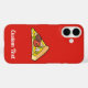 Pizza slice cartoon illustration. Custom background colour. Custom text.