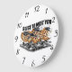 Purchased this online and it got delivered quickly. It was a present for my Dads 70th birthday. He loves clocks so decided to get him one with something written on it. Battery went in and it started working straight away. Dads had no issues with it. Printing was just how it came up online.