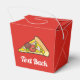Pizza slice cartoon illustration. Custom background colour. Custom text on both sides.