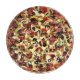 With pepperoni, sausage, cheese, peppers, onions, mushrooms, and olives!