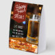Classy, modern, beer and pizza "Happy Hour Specials" tabletop menu promotional design. All text is editable. Design by Holiday Hearts Designs (rights reserved).