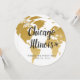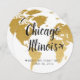 Gold world map on a round card that looks like a globe table name cards - personalise with your favourite travel destinations for each table! Great conversation starter at an elegant destination wedding or travel theme reception, baby shower, bridal shower or mitzvah.