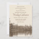 This serene mountain lake scene wedding invitation, created from one of my own personal kayaking photographs, has the feel of a vintage photograph and features an undisturbed lakeside scene with lightly rippled but calm water reflecting distant trees and rock structures, perfect for a mountain, lakeside, or riverside wedding celebration - customise your event's details on a cream-coloured background - by katz_d_zynes