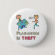 Plagiarism is Theft design shows artwork being stolen by a thief, while the copyright owner and creator runs behind shouting "Hey!". Underneath the words "Plagiarism is THEFT" state the point.