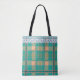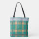 Plaid and lace green and peach tote bag