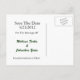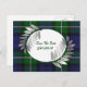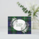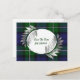 Elegant wedding save the date post card done in the traditional Forbes green and blue tartan plaid. Lovely graphics of silver tone fern fronds frame a round white text area, on the front. All text, on the front and back side of the card, is fully customisable to read what you want.
