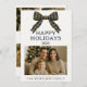 Send elegant Christmas greetings with this festive holiday flat card featuring a navy and gold plaid bow, timeless typography, and space for your favourite family photos. A modern twist on classic holiday style, this customisable Christmas card allows you to update names, year, and message for a personalised keepsake. Perfect for families who want to combine tradition with a touch of sophistication.