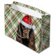 How cute is this Chocolate Cocker Spaniel in his or her red Santa cap against a great green seasonal plaid patterned background, making this holiday season gift bag perfect for the Cocker mum or dog lover.