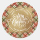 Merry Christmas in chic white lettering on a splash of faux gold foil, these round stickers are personalised with Sweet Holiday Wishes and your family name in chic lettering on a pattern of gold squiggles on a holiday plaid pattern. MATCHING paper plates, napkins and MORE designs in our store.