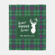 Cute home sweet home Christmas blanket you can easily customise by clicking the "Personalise" button, Featuring deer silhouette and clan Duncan tartan in green, and purple check. Perfect for your cosy nights in during the holidays. Makes a great gift