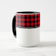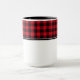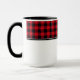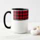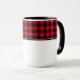 This ceramic coffee mug is shown with a cute black and red buffalo plaid print.