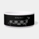 Personalised dog bowl for Sausage dog lovers or lovers of anything stylish and a bit quirky with elongated dachshund in black plaid on a black background.