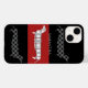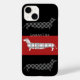 Stylish and quirky personalised case for dog lovers with elongated, plaid pattern sausage dogs on bold red and black stripes.