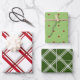 Plaid & Dots Christmas Wrapping Paper Flat Sheet Set of 3