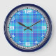 Plaid Fabric Texture Blue Stripes Pattern-43657 Large Clock