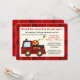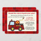 Adorable red plaid fire truck for your child's birthday party. Personalise text as preferred.