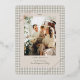 Send charming holiday greetings with this sweet photo card featuring your family portrait in an elegant scalloped frame with delicate bow accent. The cottage core aesthetic combines soft sage green gingham checks with warm cream tones and rose gold foil accents, creating a cozy, timeless card that feels both festive and inviting.