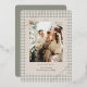 Plaid Green Gingham Scalloped Frame Tiny Bow Photo Foil Holiday Card