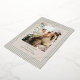 Use high-quality family photos showing everyone clearly—cozy living room shots, outdoor family portraits, or casual home photos all work beautifully. Photos with warm, natural lighting complement the soft gingham aesthetic. Since the frame is rectangular, standard family portrait orientations work perfectly. Include pets in the photo—they're family too!