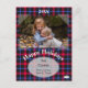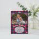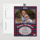 Holiday photo post card with Grey plaid background image. Design by HAMbyWhiteGlove. Black.