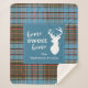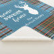 Cute home sweet home Christmas blanket you can easily customise by clicking the "Personalise" button, Featuring deer silhouette and clan Anderson tartan in teal, light blue check.