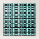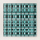 A modern twist on plaid in shades of aqua, teal, black and white.