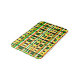 This bath mat features a modern twist on plaid in orange, yellow, green, black and white.