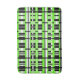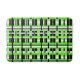 This bath mat features a modern twist on plaid in shades of lime green, grey, black and white.