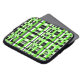 A modern twist on plaid in shades of lime green, grey, black and white.