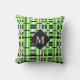 Plaid in Lime Green, Black & Grey Monogram Cushion