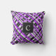 This throw pillow features a modern twist on plaid in shades of purple, lavender, grey, black and white. Personalise the monogram to fit your needs!