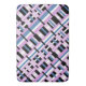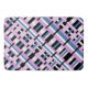 This bath mat features a modern twist on plaid in shades of orchid, slate blue and black and white.