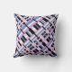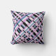 This pillow features a modern twist on plaid in shades of orchid, slate blue and black and white.