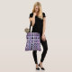 This all-over-print tote features a modern twist on plaid in shades of orchid, slate blue and black and white.
