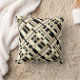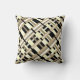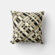 This throw pillow features a modern twist on plaid in taupe, tan, black, and white.