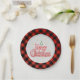 Celebrate the holidays with timeless charm using this elegant paper plate featuring a red and black plaid border, a festive green Christmas tree, and the cheerful message "Merry Christmas" in bold red. Accented with golden stars and a clean white center, this design adds warmth and sophistication to your seasonal table. Perfect for Christmas dinners, winter gatherings, or cozy family parties.