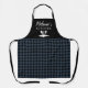 Personalise apron with seamless navy blue and black plaid buffalo check, Kitchen Tools Icon along with custom name +Text. Perfect as a birthday gift or holiday.