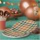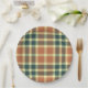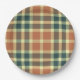 Lovely plaid paper plates with fall colours. The colours used to make the plaid design are Orange, Green, and yellow.