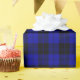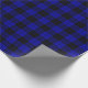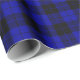 A wrapping paper designed with a black and blue plaid pattern. Customise the blue background among other options.