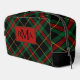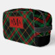 Black Plaid pattern Monogram Dopp Kit in dark gingham reds, black, green with bold monogrammed initials.